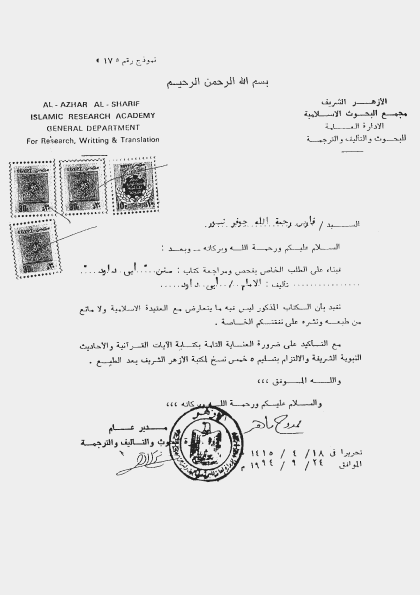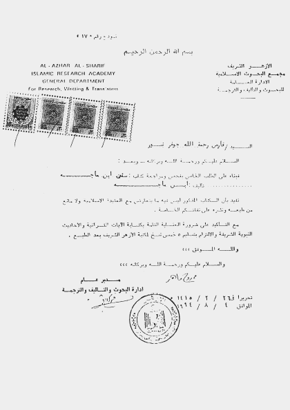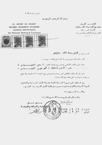 All of the Hadith texts are submitted for approval to the Islamic Research Institute of Al-Azhar University, Cairo, and are only released in printed and magnetic form once approval has been given.