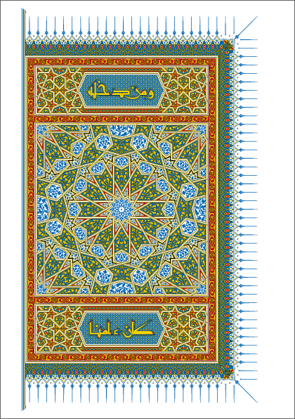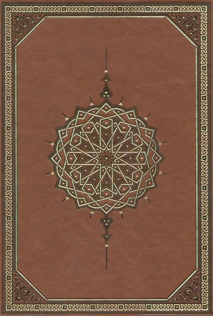 4 colour print: gold, blue, red and black with gold and dark embossed Balacron imitation leather cover